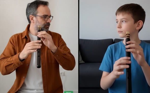 Live video lessons showing proper finger positioning, breathing, and expression techniques.